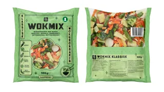 För att kunna erbjuda bättre förpackningar är samverkan ett framgångsrecept. Därför ingår vi ett branschinitiativ inom svensk dagligvaruhandel med målsättningen att förpackningar i frysen ska göras av återvinningsbara material, mindre infärgat material och mindre tryckyta för att de ska bli enklare att materialåtervinna. Till exempel så har vi tagit fram en ny förpackning till våra frysta wokmixer med transparenta delar på både fram- och baksida. De består av återvinningsbart material med mindre tryckyta som ger bättre förutsättningar i materialåtervinningen och dessutom kan du som konsument se innehållet i förpackningen.