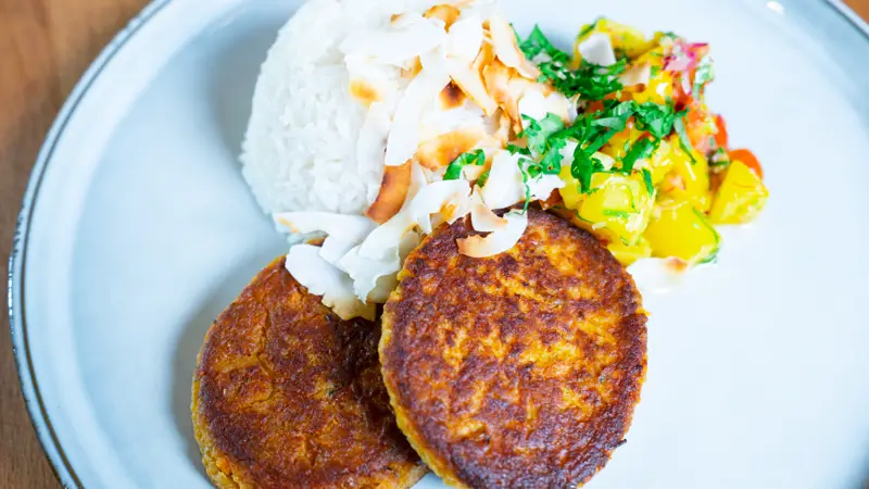 Testa våra goda och smakrika braxen fish cakes! I den här enkla vardagsrätten serveras våra fish cakes med krämigt kokosris och en sötsyrlig mangosalsa.