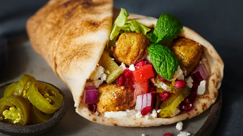 En klassisk falafelrulle görs lätt utan spis. Se bara till att tina ingredienserna i god tid för ihopsättning så har du en smarrig middagsrulle på nolltid!
