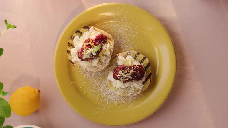 Har du precis grillat hamburgare och fått en massa bröd över? Inga problem. Pensla brödet med brynt smör och släng tillbaka på grillen. Servera med ricotta och hallon och vips så har du en supersmarrig efterrätt!