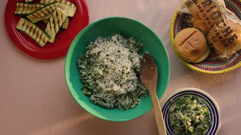Låt det bästa av två världar mötas i en grönkålsslaw med caesar-inspirerad dressing. Perfekt när du ska grilla hamburgare!