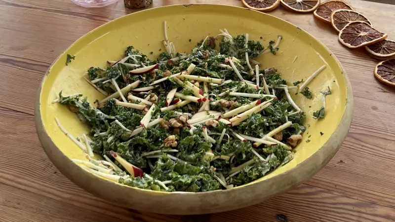 Siri Barjes ultimata julsallad med rotselleri, grönkål, parmesandressing och äpple. Salladen är det perfekta tillbehöret till julbordet som är både krämigt och krispigt. En ny favorit!