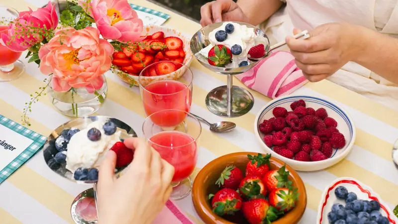Minipavlova med vispad grädde, lemoncurd och färdig marängbotten - en enkel dessert att svänga ihop på nolltid. Perfekt att servera på midsommar!