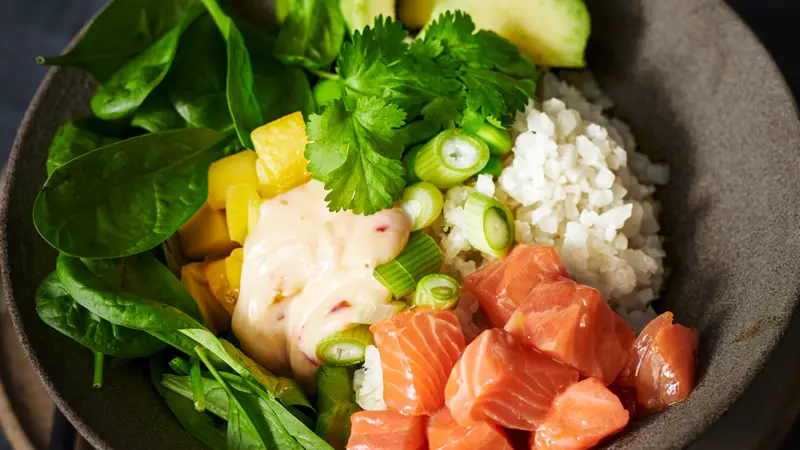 Den hawaiianska favoriten kräver ingen uppvärmning, bara upptining. Byt ut vanligt kokt ris mot blomkålsris, smaksatt med citron och du är hemma!