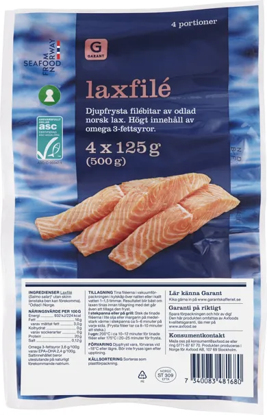 - 600–700 g fryst laxfilé