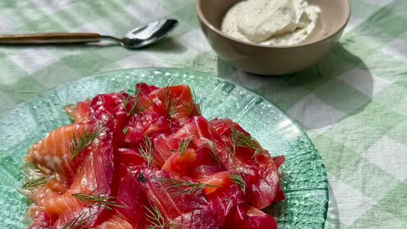 Rödbetsgravad lax med dill- och pepparrotssås