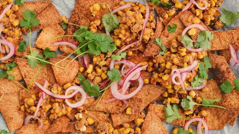 Har du kvar rester från tacokvällen? Perfekt! Dessa kryddiga tortillachips med majs-och fetaoströra slängs ihop i ett nafs och avnjuts lika snabbt!