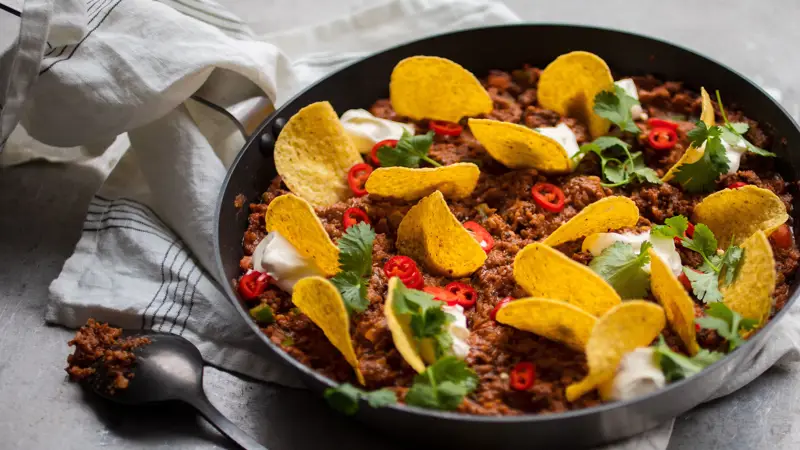 Tacos är gott men kräver många skålar, vilket tar plats och skapar disk. Men inte nu längre! För du har väl inte missat tacopannan? Lägg allt i samma panna och middagen är serverad. Minimalt med trams, minimalt med disk, bara att hugga in.