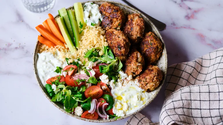 Nöt & Grönt biffar med couscous, tomatsallad & tzatziki