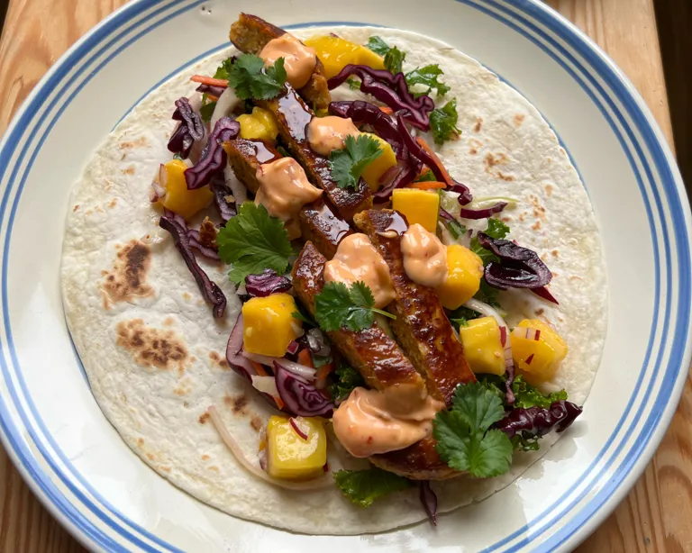 Fish tacos med mangosalsa, chilimajo & kål - Siri Barjes recept
