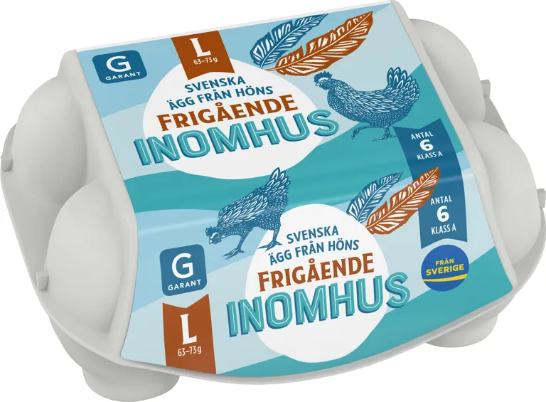 6-pack ägg från frigående höns inomhus. Stora ägg från Sverige.