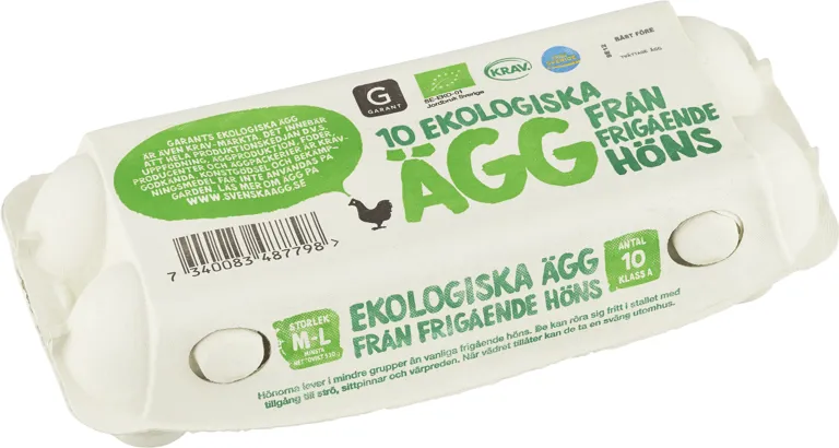 10-pack ekologiska ägg från frigående höns utomhus. Stora ägg från Sverige.