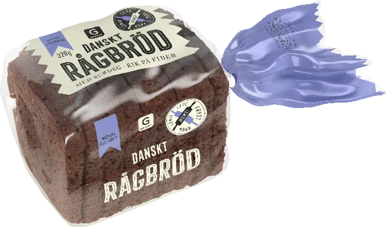 Danskt rågbröd med surdeg. Rikt på fibrer med 41% fullkorn. 320 gram.