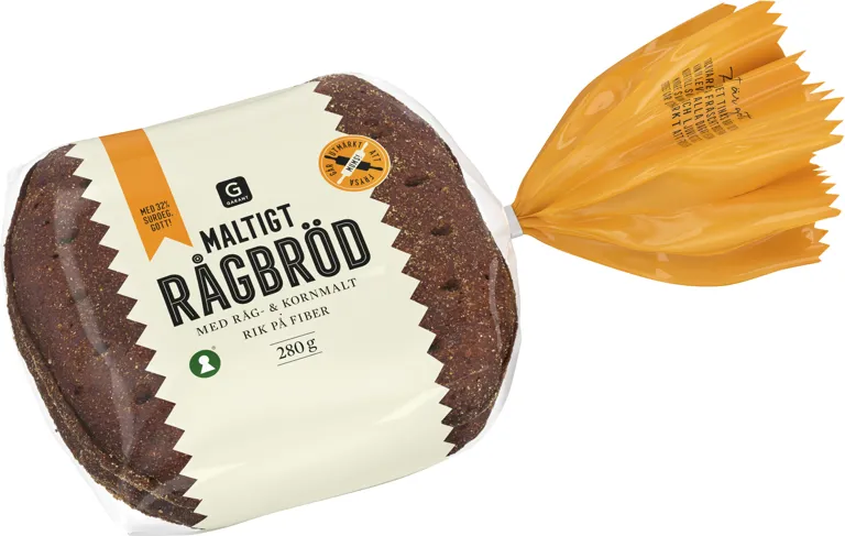 Maltigt rågbröd med surdeg, råg och kornmalt. Rik på fibrer. 420 gram.