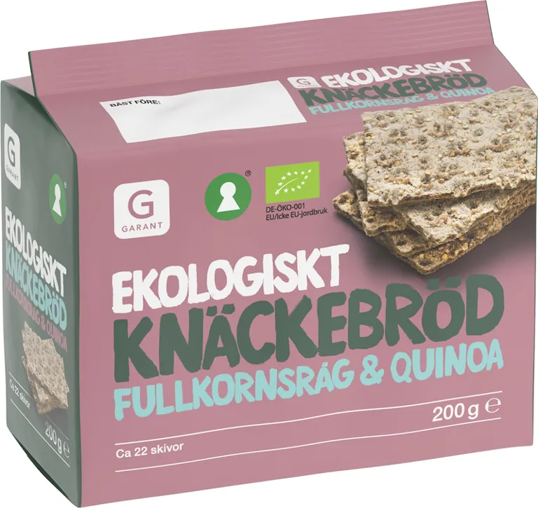 Ekologiskt knäckebröd med fullkornsråg och quinoa. Cirka 22 skivor.