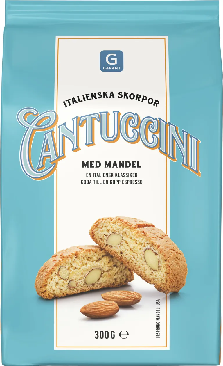 Cantuccini. Italienska skorpor med mandel (biscotti). En italiensk klassiker goda till en kopp espresso. 300 gram.