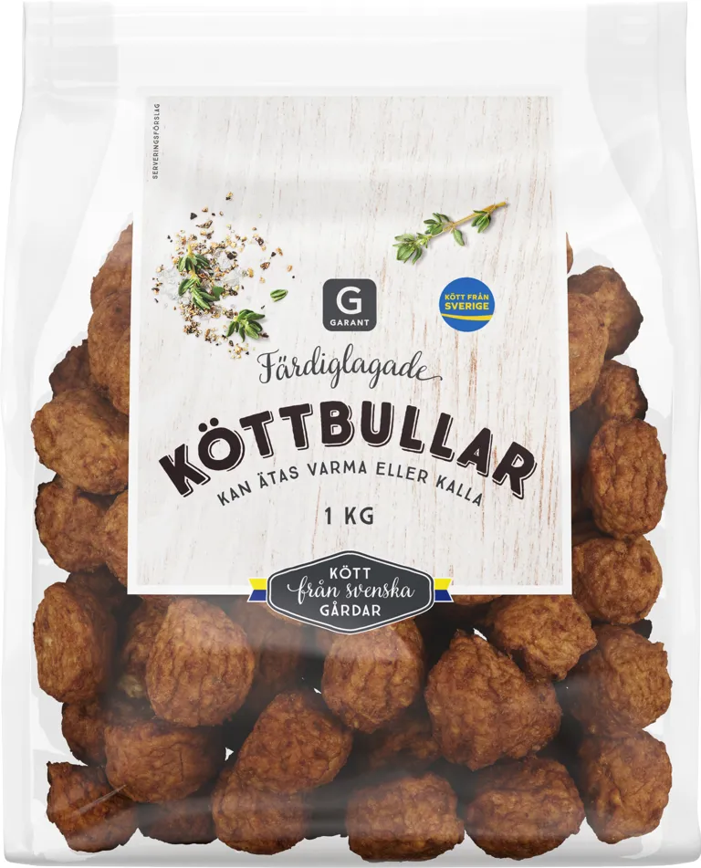 Färdiglagade köttbullar. Kan ätas varma eller kalla. Kött från svenska gårdar. 1kg.