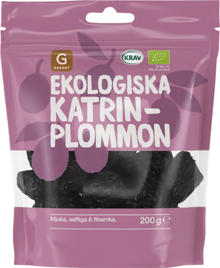 Ekologiska katrinplommon. Mjuka, saftiga och fiberrika. 200 gram.