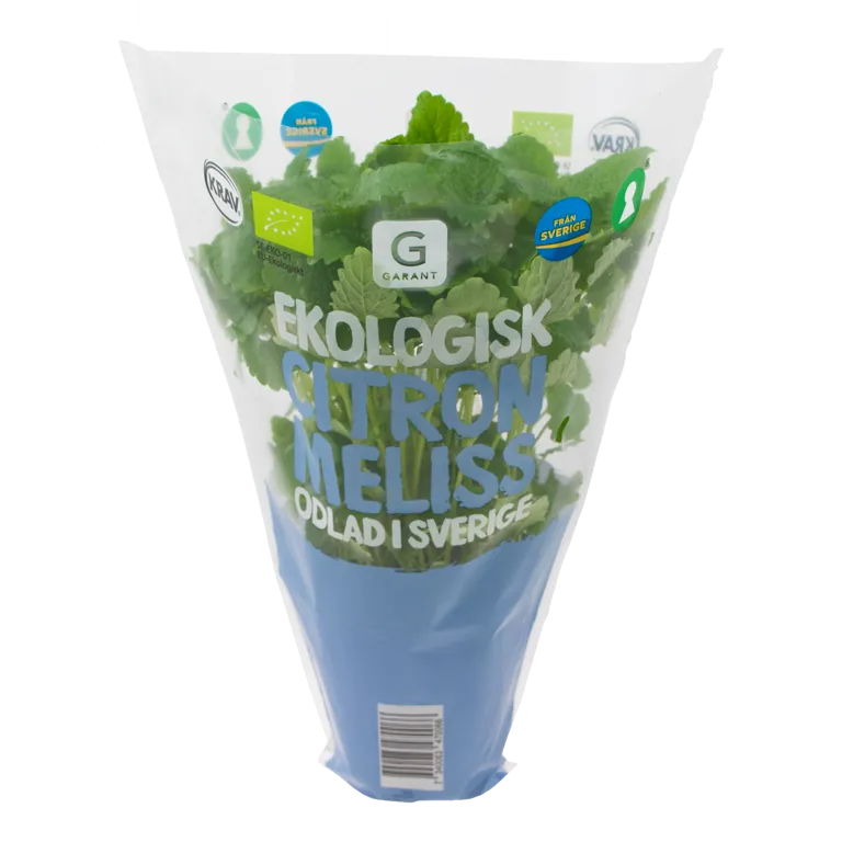 Ekologisk citronmeliss i kruka. Odlad i Sverige.