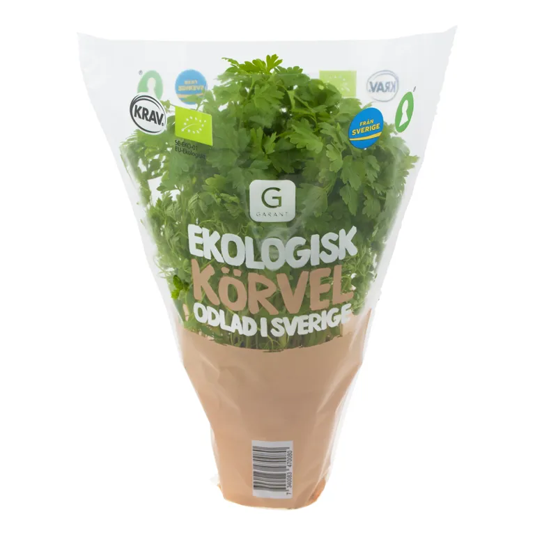 Ekologisk körvel i kruka. Odlad i Sverige. 100 gram.