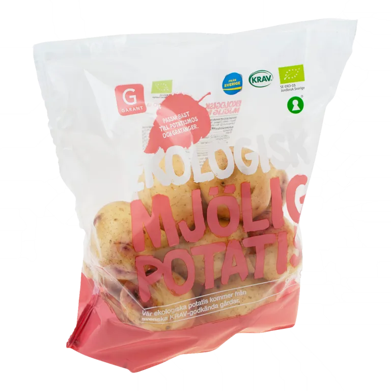 Ekologisk mjölig potatis från svenska KRAV-godkända gårdar. Passaer bäst till potatismos eller gratänger. 900 gram.