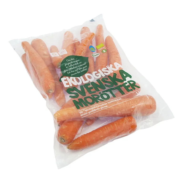 Ekologiska svenska morötter från KRAV-godkända gårdar. Klass 1. Cirka 1 kg.