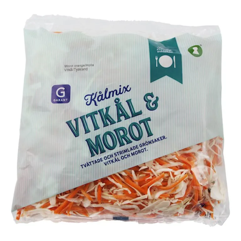 Vitkål och morots mix. Tvättade och strimlade grönsaker. 400 gram.