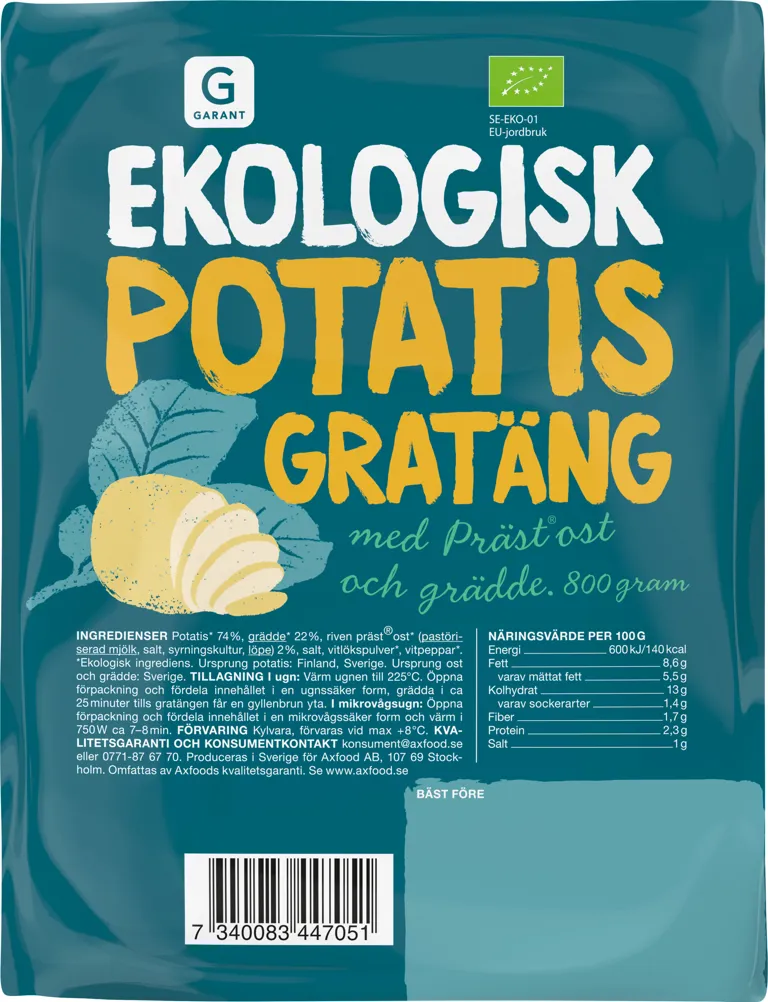 Ekologisk potatisgratäng med prästost och grädde. 800 gram.