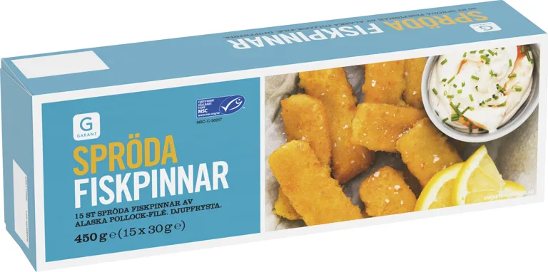 Djupfrysta fiskpinnar. Spröda. 15 stycken.