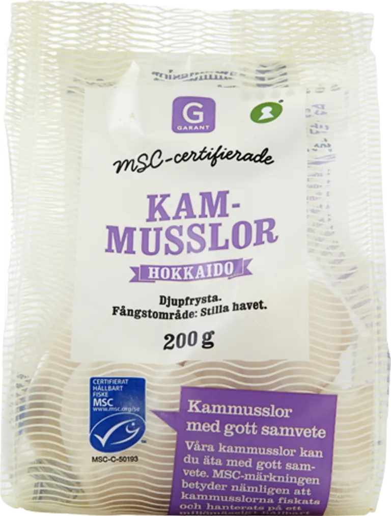 Djupfrysta kammusslor från Stilla havet. 200 gram.