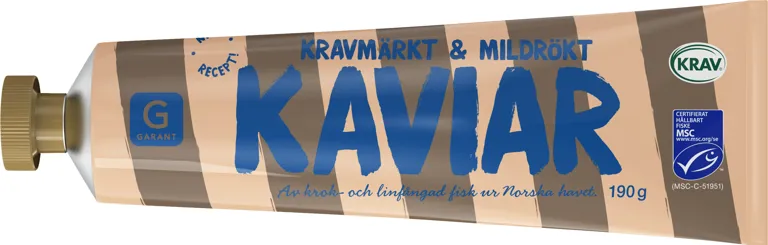 Mildrökt kaviar. Av krok-och linfångad fisk ur norska havet. Krav och MSC-märkt. 190 gram.