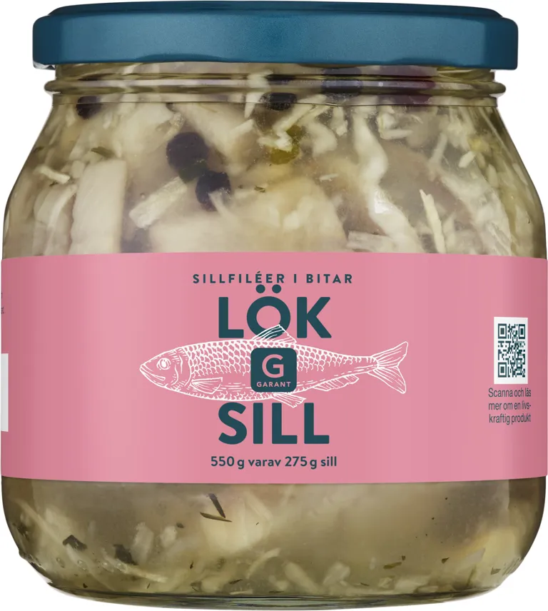 Löksill med sillfiléer i bitar. Sillen kan ätas direkt eller användas i olika maträtter. Smaklig sill!
