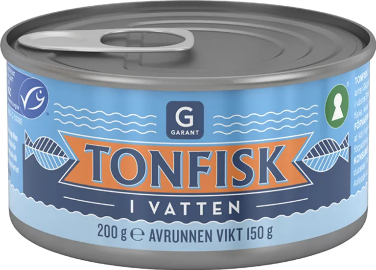Ingredienser: TONFISKFILÉ*, vatten, salt. * Tonfisk av arten Skipjack (Katsuwonus pelamis) Tonfisken är fiskad med selektiv ringnot i västra Stilla Havet (FAO 71).