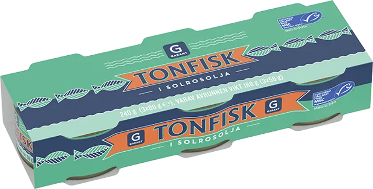 När du väljer tonfisk med MSC-certifiering kan du känna dig trygg i att fisken är ett bra val, fiskad med säkra metoder, hållbara bestånd och med full spårbarhet. Fisken är också fångad från fartyg med höga krav på minsta miljöbelastning. Ett bra val för både dig och miljön! Glöm inte att källsortera burken som metall och kartongen som papper i materialåtervinningen.