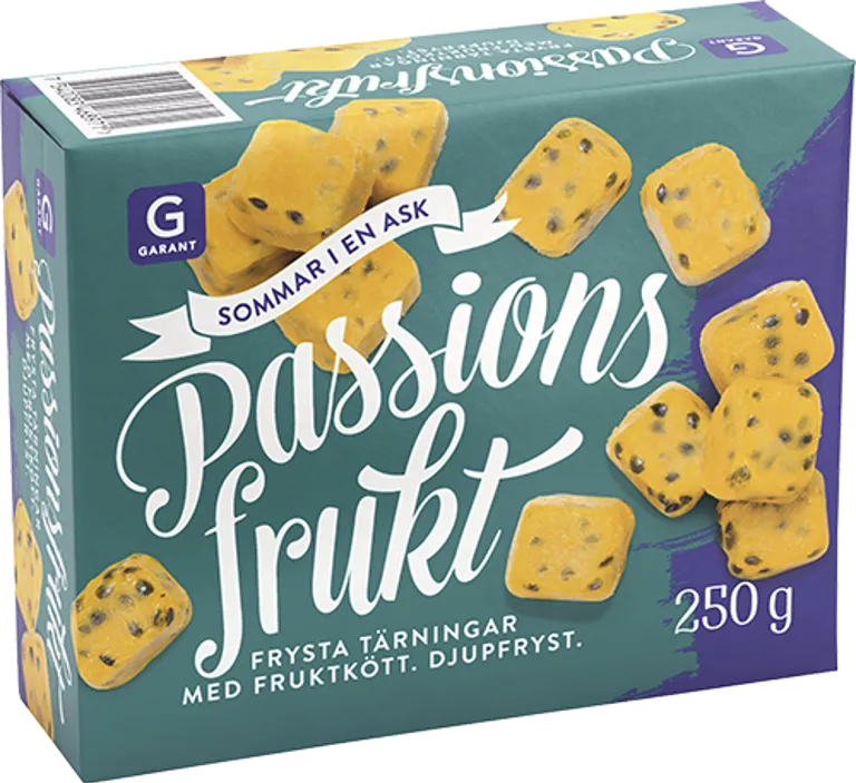 Passionsfrukt, styckfrysta tärningar med fruktkött.