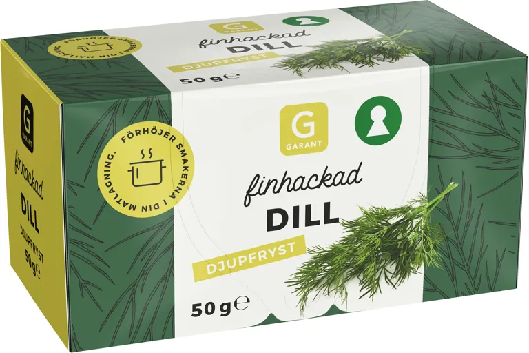 Djupfryst finackad dill. Förhöjer smakerna i din matlagning! 50 gram.