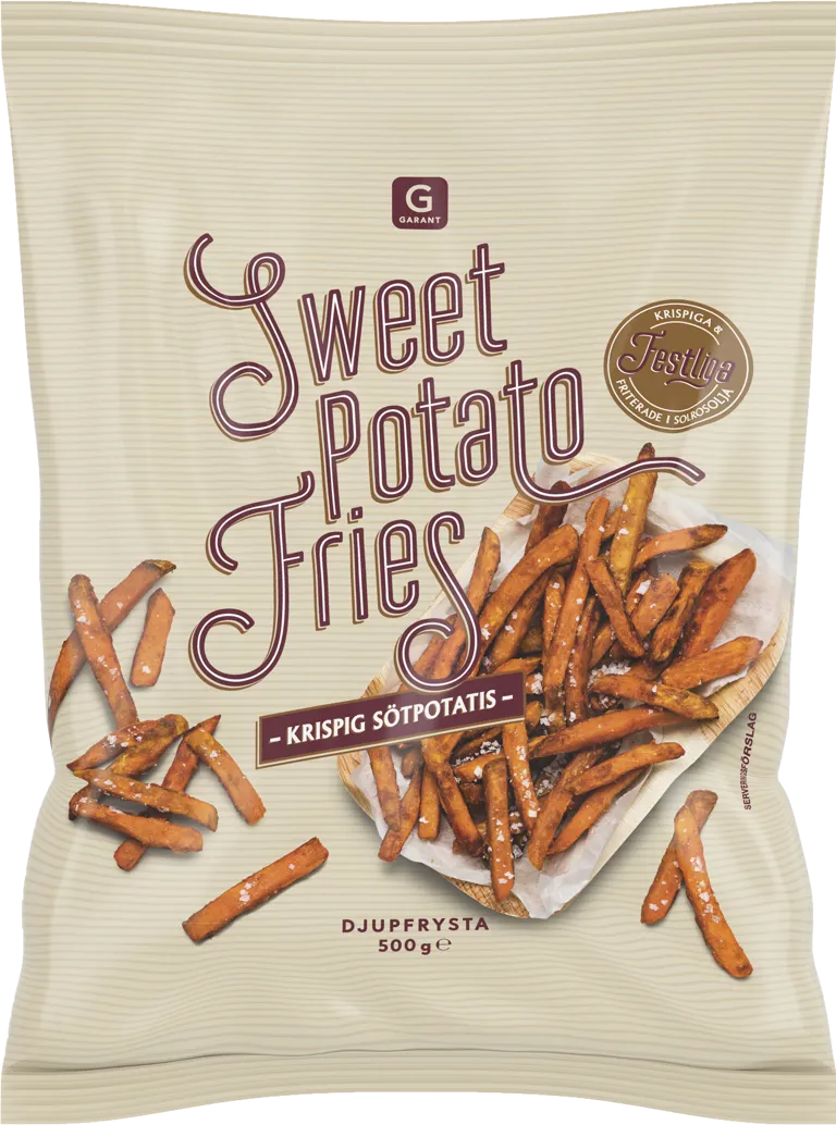 Djupfrysta sötpotatispommes. Krispiga. 500 gram.