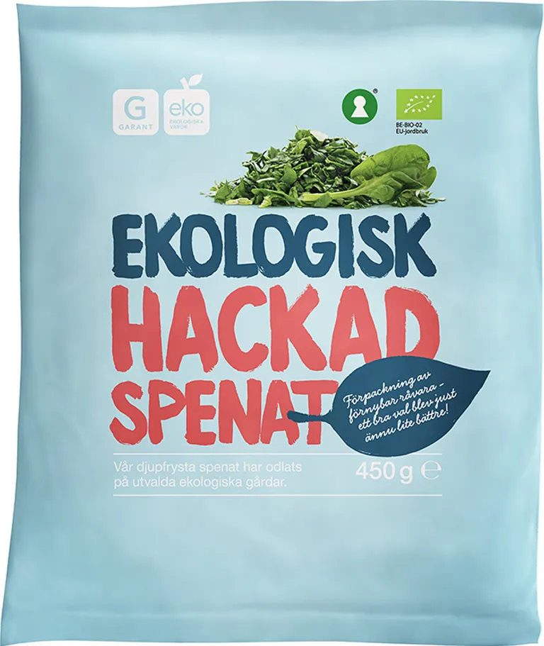 Förvälld och hackad spenat*. *Ekologisk ingrediens.