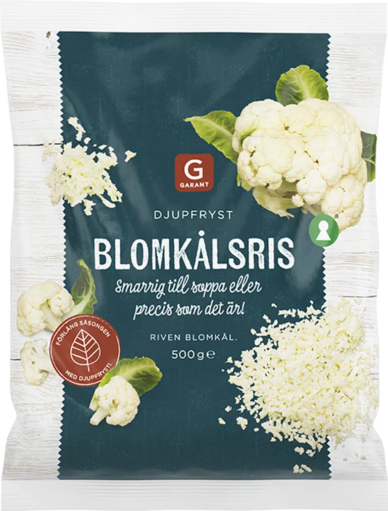Djupfryst blomkålsris. Riven blomkål. Smarrig till soppa eller precis som det är! 500 gram.