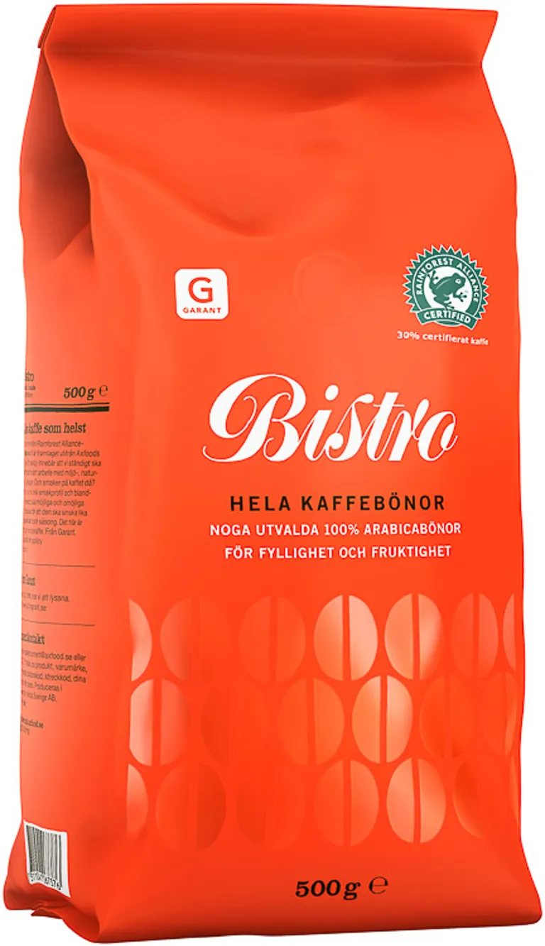 100% Arabicabönor*. *Fullständigt certifierat kaffe från Rainforest Alliance-certifierade odlingar.