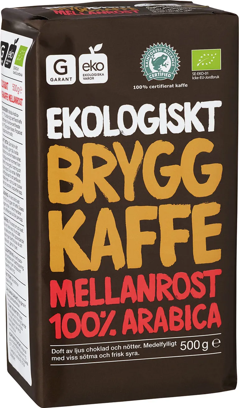 Ekologiskt bryggkaffe mellanrost. Medelfylligt med viss sötma och frisk syra från choklad och nötter. 500 gram.