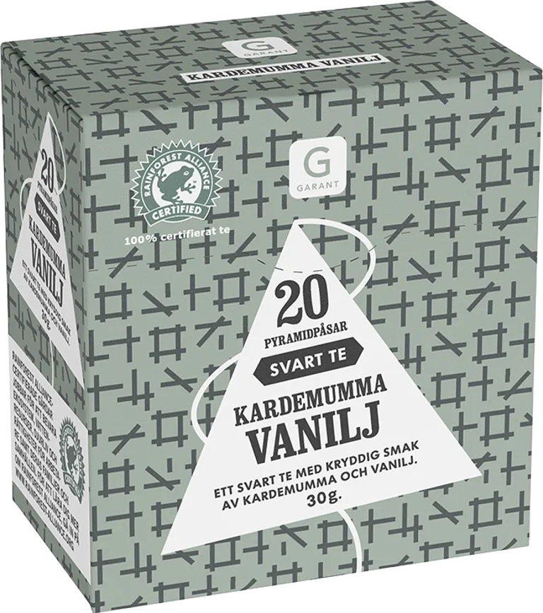Svart té med kryddig smak av kardemumma och vanilj. 20 påsar.