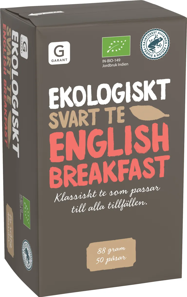Ekologiskt klassiskt english breakfast. Svart te som passar till alla tillfällen. 50 påsar.