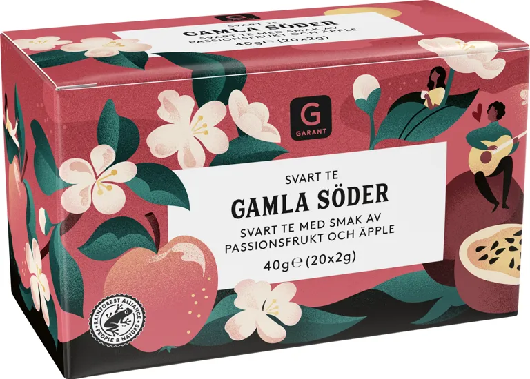 Svart te*, äpple 4%, passionsfruktarom 3%. *Rainforest Alliance-certifierad. Läs mer på www.ra.org.