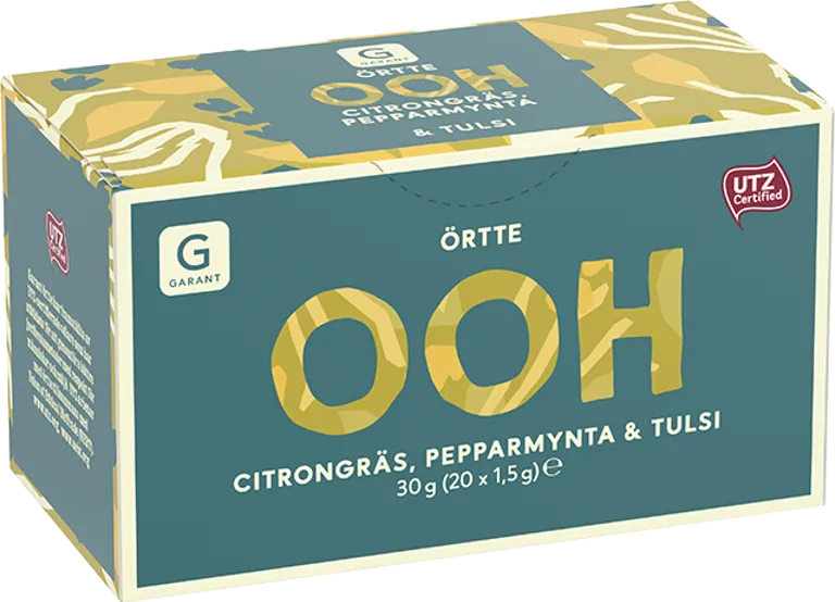 Örtte med citrongräs, pepparmynta och tulsi. 20 påsar.