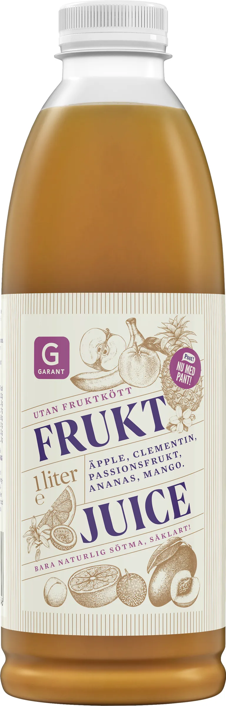 Fruktjuice med frisk sötma från fruktens naturliga sockerarter. Vår juice pressas direkt efter skörd. Dessutom går flaskan att panta!