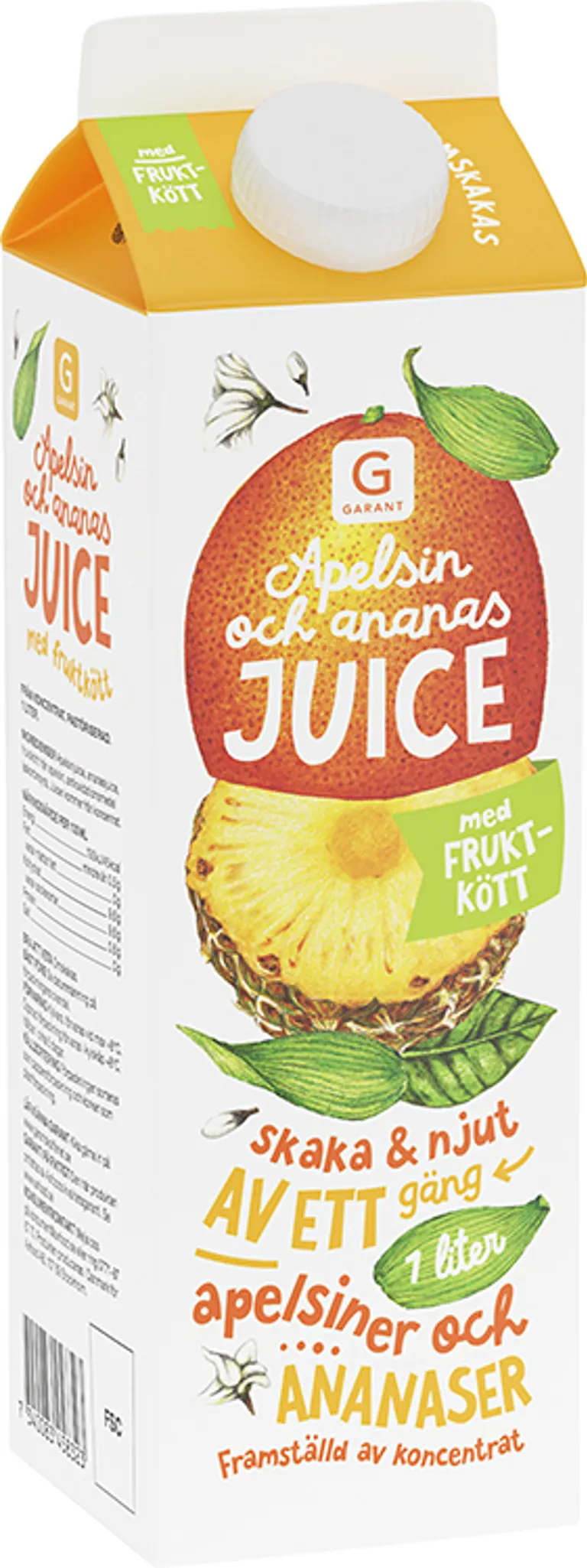 Apelsinjuice med fruktkött* 70%, ananasjuice* 30%, antioxidationsmedel (askorbinsyra). *Från koncentrat.