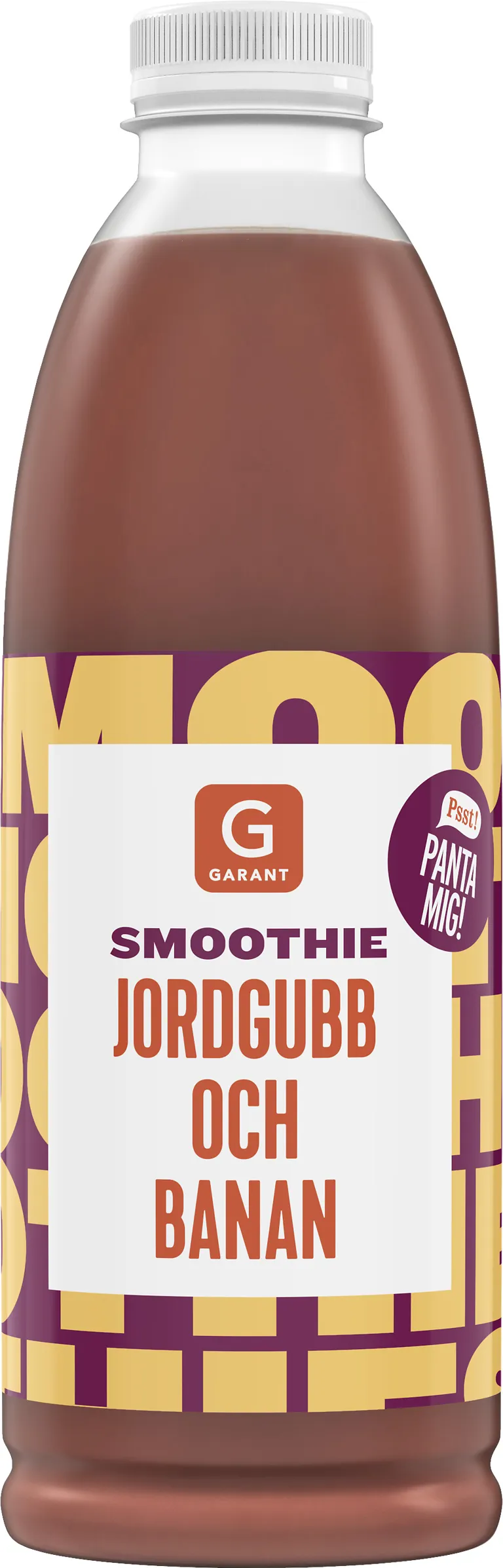 Druvjuice, bananpuré 30%, jordgubbspuré 29%, fruktkött från apelsin, aroniajuice.