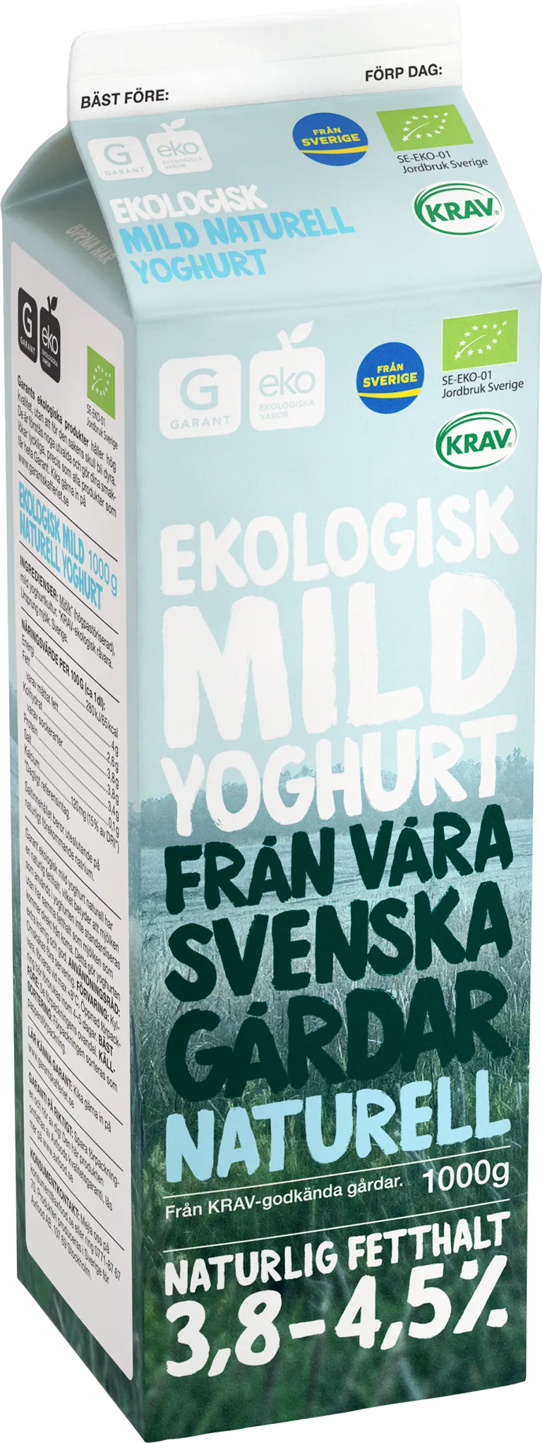 Ekologisk naturell yoghurt från våra svenska KRAV-gårdar. Fetthalt 3,8-4,5 %. Garants ekomärkning talar om att en vara är ekologisk och ibland även KRAV-märkt. Vårt sortiment fylls hela tiden på med fler EKO-varor.