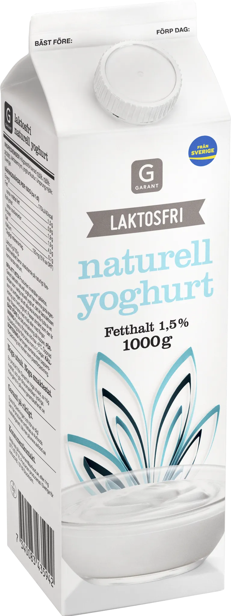Laktosfri naturell yoghurt. Från svenska gårdar. Fetthalt 1,5%. 1000 gram.